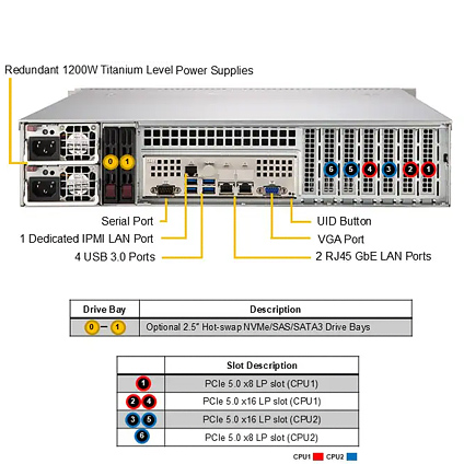 - 4x PCIe 5.0 x16 LP slots + 2x PCIe 5.0 x8 LP slots