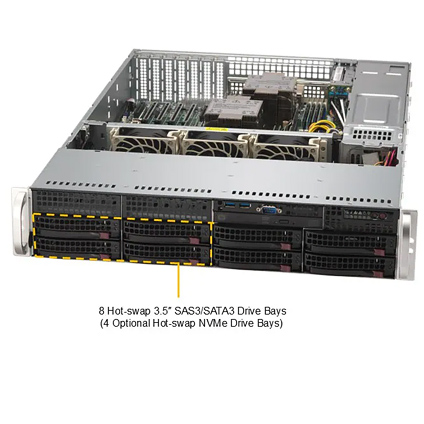 - 4x Hot-swap 3.5" NVMe/SAS/SATA + 4x Hot-swap 3.5" SAS/SATA drive bays