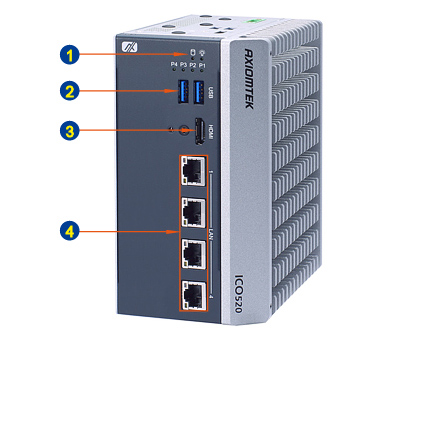 - 4 x isolated COM (Optional), isolated DIO (8-in/8-out), 4 x 2.5 GbE LAN