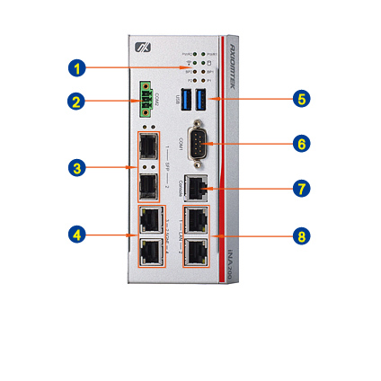 The iNA200 is a robust DIN-rail cybersecurity gateway designed to protect operational technology (OT) field sites and secure edge environments. Powered by an Intel Atom x6212RE or x6414RE processor (Elkhart Lake), it supports up to 32GB of DDR4-3200 memory for reliable, high-performance operation. The system offers advanced networking with 2 GbE LAN ports, 2 high-speed 2.5GbE LAN ports, and 2 SFP ports for flexible connectivity. Built for harsh conditions, it operates in temperatures ranging from -40°C to +70°C and supports a wide 9 to 36V DC dual power input for enhanced reliability. With built-in TPM 2.0 for secure hardware-based cryptography and support for 5G connectivity via M.2 Key B 3042/3052, the iNA200 is an ideal solution for modern industrial cybersecurity and resilient edge computing deployments.