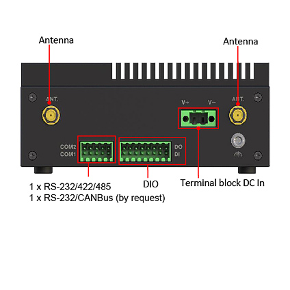 - 1 x RS-232/CANBus (by request), 1 x RS-232/422/485 (2 x 5 Terminal Block)