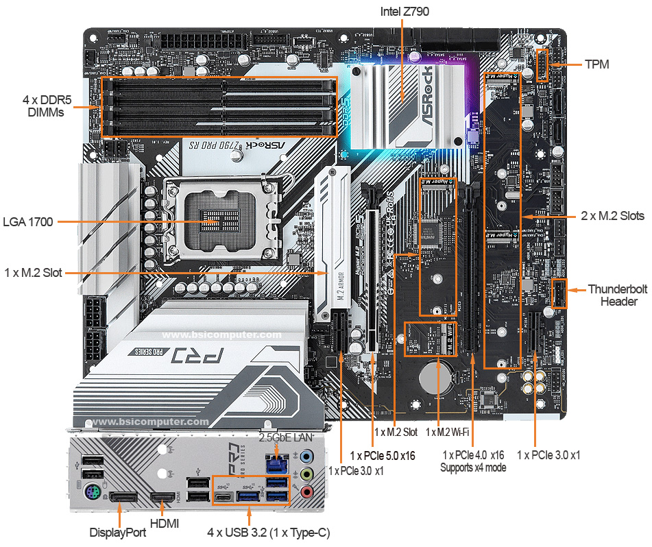 - 3 x M.2 Slots, 1 x M.2 key E for Wi-Fi
