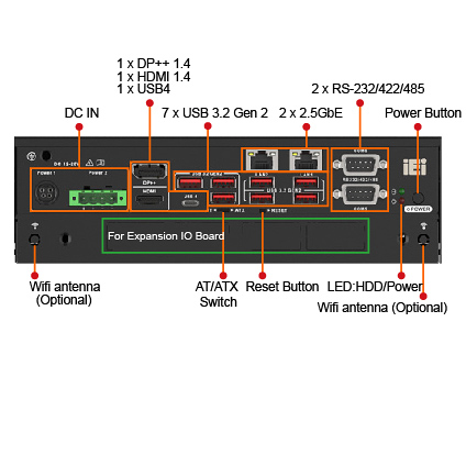 The TANK-XM813 is a high-performance fanless embedded computer designed for demanding industrial and edge computing applications. At its core is an LGA1851 socket supporting next-generation Intel Core Ultra Processors (Series 2, Arrow Lake-S) with a maximum 65W TDP, providing powerful processing in a rugged, silent design. Connectivity is robust, featuring two 2.5GbE ports for high-speed networking, alongside multiple USB and serial ports for peripheral integration. Its flexibility is a key advantage, offered through multiple internal expansion boards and various optional backplanes and chassis, allowing for extensive customization. Furthermore, the system is CE/FCC compliant, ensuring it meets stringent electromagnetic interference and safety standards for deployment in diverse environments.