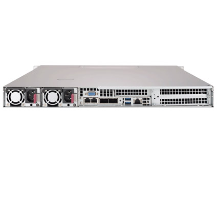 The Supermicro Server 1029GP-TR 1U Rackmount server features dual Intel® Xeon® Scalable Processor, with up to 2.0TB DDR4 ECC 3DS LRDIMM Memory, supports up to three GPU cards. The Supermicro SuperServer 1029GP-TR comes with four 2.5" hot-swap drive bays, ten 40mm counter-rotating fans, and is equipped with 1000W redundant platinum level power supply.