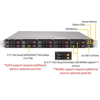 - 10x 2.5" Hot-swap SATA3 Drive Bays: