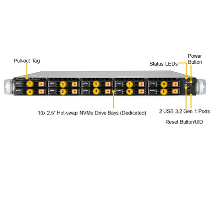 - 10x Hot-swap 2.5'' All NVMe tool-less drive bays
