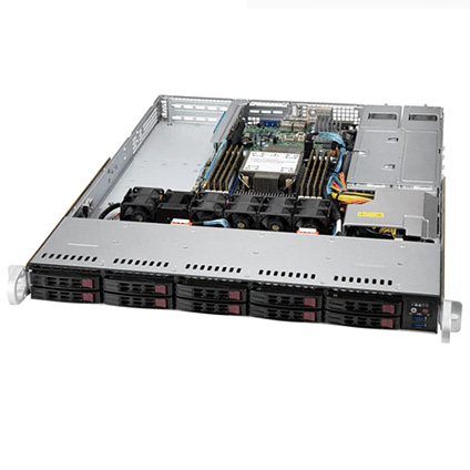 The Supermicro SuperServer 110P-WTR 1U 23.5" depth Rackmount server features 3rd Gen. Intel® Xeon® Scalable Processor, up to 3.0TB DDR4 ECC 3DS LRDIMM Memory, M.2 slot and dual 10GBase-T LAN ports. The Supermicro Server 110P-WTR comes with ten 2.5" hot-swap SATA3/NVMe drive bays, five 40mm Counter-rotation PWM fans, and is equipped 750W redundant platinum level power supply.