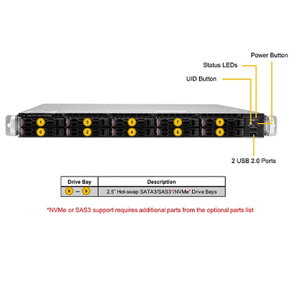 - 10x 2.5" Hot-swap NVMe/SATA/SAS Drive Bays