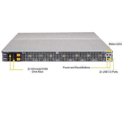 - 2x 2.5" NVMe Hot-swap drive bays; 2x 2.5" SATA Internal Fixed drive bays