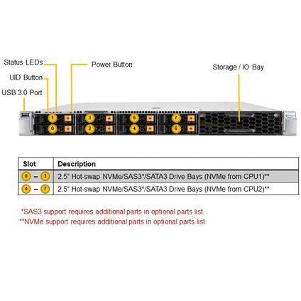 Optional 4x 2.5" hot-swap NVMe/SAS/SATA drive bays;