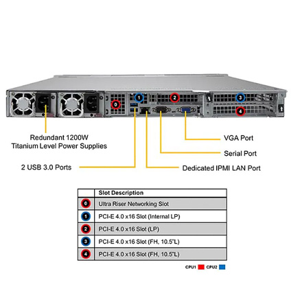 - 1x Internal PCI-E 4.0 x16, 1x PCI-E 4.0 x16 (LP), 2x PCI-E 4.0 x16 (FH, 10.5"L)