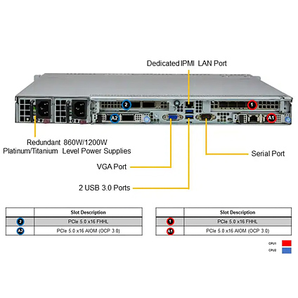 - 2x AIOM (OCP 3.0) slots with NCSI for networking, 1x dedicated IPMI LAN
