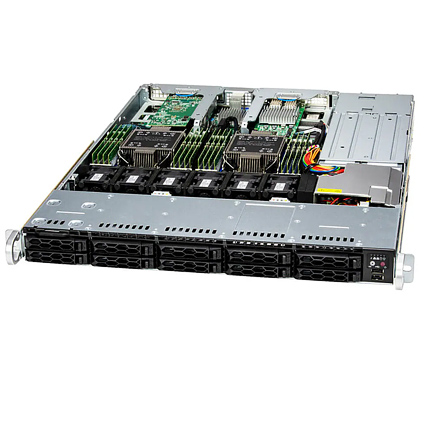 The Supermicro CloudDC SuperServer 121C-TN10R 1U 23.5" depth Rackmount server features dual socket 4th/5th Gen Intel® Xeon® Scalable Processor, 16x DDR5 ECC RDIMM slots, 2x PCIe 5.0 x4 NVMe M.2 slots, 2x PCIe 5.0 x16 FHHL and 2x PCIe 5.0 x16 AIOM (OCP 3.0). The Supermicro Server 121C-TN10R comes with 10x hot-swap hybrid NVMe/SATA/SAS drive bays, 6x heavy duty fans, and is equipped with 860W redundant titanium level power supply.
