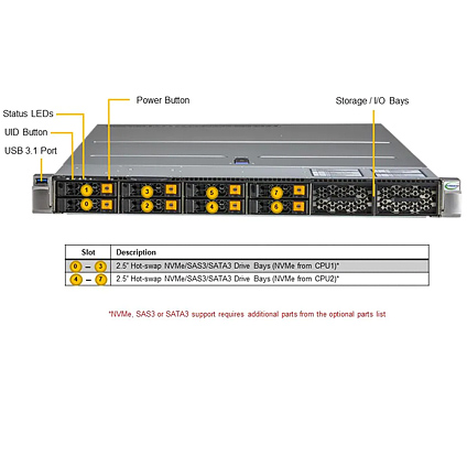 - 8x 2.5" hot-swap SATA/SAS/NVME drive bays