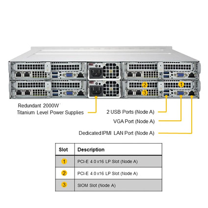 The Supermicro A+ Server 2014TP-HTR is a 2U 4x nodes high performance rackmount server. Each nodes supports single AMD EPYCâ„¢ 7002/7003 series processor, up to 2TB DDR4 ECC Registered Memory, each nodes comes with 3x hot-swap 3.5" SATA3 drive bays and 4x SATA/PCI-E 4.0 x4 M.2 slots. The 2014TP-HTR TwinPro system is equipped with 4x 80mm heavy duty fans, and 2000W redundant titanium level power supply. The Supermicro Server 2014TP-HTR is a multi-node server design optimized for hyper-converged infrastructure, flash storage with reduced data center TCO.