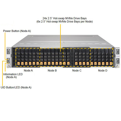 Supermicro 2029BT-HNR 2U BigTwin Racknount Server w/ 24x NVMe 2.5" Hot-swap Drive Bays