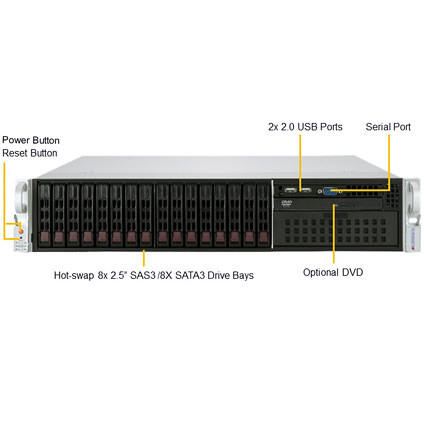 - 16x 2.5" Hot-swap Drive Bays: Supports 8x 2.5" SAS3 & 8x 2.5" SATA3 Drive Bays