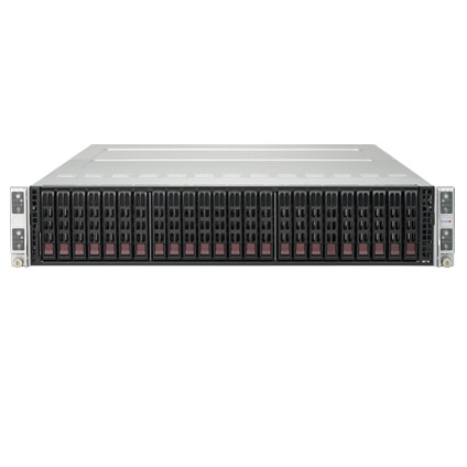 The Supermicro SuperServer 2029TP-HC1R is a 28.5" depth 2U 4x nodes high performance rackmount server. Each nodes supports dual Intel® Xeon® Scalable Processor, up to 2.0TB DDR4 ECC 3DS LRDIMM memory. The 2029TP-HC1R 2U Racknount Server comes with 24x hot-swap 2.5" SAS/SATA drive bays with SAS3 12Gb/s controller, four 80mm heavy duty cooling fans, and is equipped with 1200W redundant Titanium level power supply.