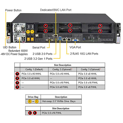 Up to 6 x Configurable PCIe 5.0 Slots (4 standard + 2 Optional) - Onboard 2 x 10GbE Ports