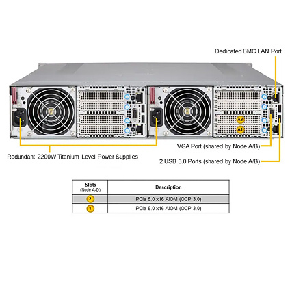 - 2200W Redundant Power Supplies Titanium Level (96%+); Shared Power Design