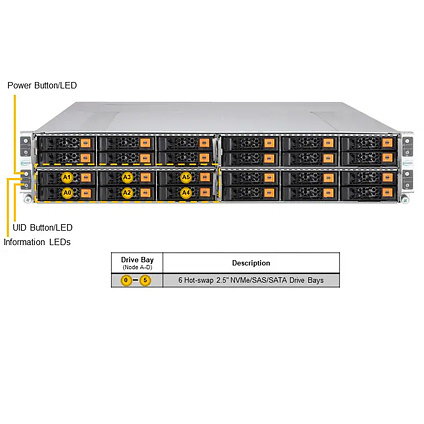 - 6 x Hot-Swap 2.5†NVMe/SAS/SATA drive bays