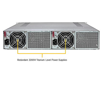 - 2200W Redundant Power Supplies Titanium Level (96%+); Shared Power Design