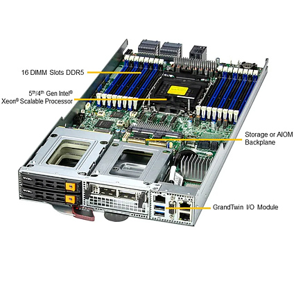- Integrated GrandTwin I/O Module with BMC, 2x USB, VGA and 2x 10GbE or 2x 25GbE