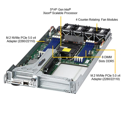 - Single Socket E (LGA-4677) 5th Gen Intel® Xeon®/4th Gen Intel® Xeon Scalable processors