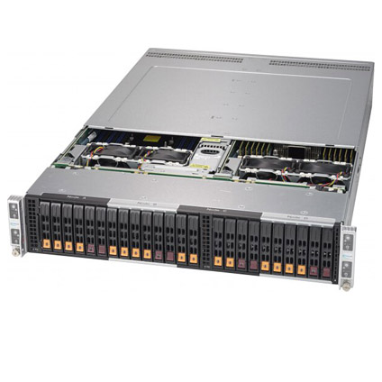 The Supermicro A+ Server 2124BT-HNTR is an 2U 4x nodes high performance rackmount server. Each nodes supports dual AMD EPYCâ„¢ 7002/7003 series processor, up to 4TB DDR4 ECC Registered Memory. The 2124BT-HNTR BigTwin system comes with 24x hot-swap 2.5" NVMe/SATA3 drive bays, is equipped with 4x heavy duty 80mm PWM fans, and 2200W redundant titanium level power supply. The Supermicro Server 2124BT-HNTR BigTwin system is a multi-node server design optimized for hyper-converged infrastructure, flash storage with reduced data center TCO.