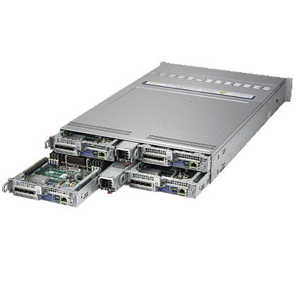 4x Hot-Pluggable Systems (Nodes) in a 2U Form Factor. Each Node Supports the Following: