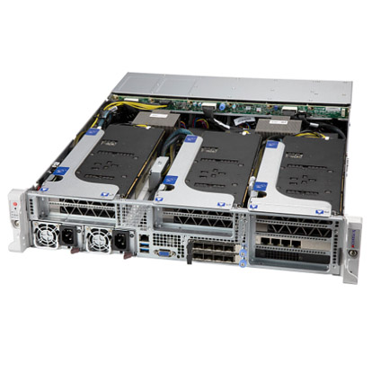 The Supermicro SuperServer 220HE-FTNR 2U 22.6" depth Rackmount server features dual 3rd Gen. Intel® Xeon® Scalable Processor, 32 DIMM slots supports up to 12.0TB Memory, 2x M.2 NVMe/SATA slots, 4x PCIe 4.0 x16 slots with GPU/Accelerator support. The Supermicro Server 220HE-FTNR comes with six 2.5" hot-swap NVMe/SATA drive bays, six heavy duty hot-swap fans, and is equipped 2000W redundant titanium level power supply.