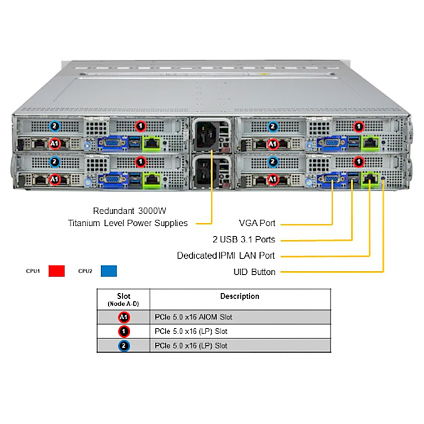 4x cooling fans per 2U enclosure, 16.5K RPM; Shared Cooling Design - 3000W Redundant Power Supplies Titanium Level (96%+); Shared Power Design