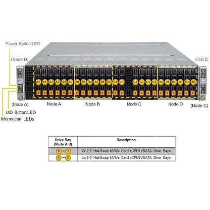 - 6x Hot-Swap 2.5†drive bays (2x PCIe 5.0 NVMe/SATA and 4x PCIe 4.0 NVMe/SATA)