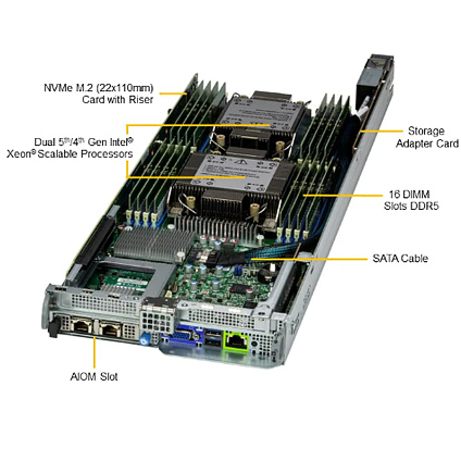 Optional M.2 (22x80) HW RAID1 NVMe Boot Controller via SCC-A2NM2241G3-B1 - Network connectivity via AIOM (OCP 3.0 compliant)