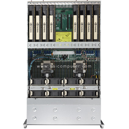 The Supermicro SuperServer 4029GP-TRT3 4U rackmount server that features dual Intel® Xeon® Scalable Processors, up to 3.0TB DDR4 ECC Registered Memory, built-in two 10GBase-T Ethernet LAN ports, and eleven PCI-E 3.0 x16 expansion slots. Moreover, the Supermicro Server 4029GP-TRT3 comes with twenty four hot-swap 2.5" drive bays, eight 92mm hot-swap cooling fans, and is equipped with 2000W redundant titanium level power supply.