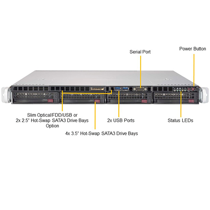 Supermicro SuperServer 5019P-MT w/ 4x 3.5" Drive Bays and Dual Port 10GBase-T LAN