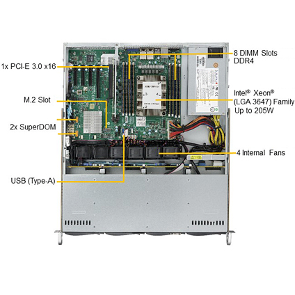 - Single Socket P (LGA 3647) supports Intel® Xeon® Scalable Processors