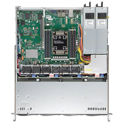 The Supermicro 510P-MR 1U 19.98" short depth Rackmount server features 3rd Gen. Intel® Xeon® Scalable Processor, supports up to 3.0TB DDR4 ECC 3DS LRDIMM Memory, two M.2 slots and dual port Gigabit Ethernet. The Supermicro SuperServer 510P-MR comes with four 3.5" hot-swap SATA3/NVMe drive bays, four 40mm PWM cooling fans, and is equipped 400W Redundant platinum level power supply.