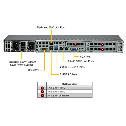 - 2x PCIe 5.0 x16 FHFL, 1x PCIe 5.0 x8(in x16) LP
