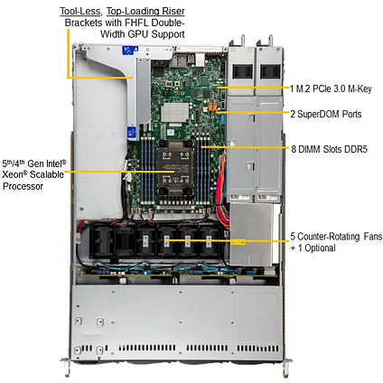 - Single Socket E (LGA-4677) 4th/5th Gen Intel® Xeon® Scalable processors. Up to 300W TDP
