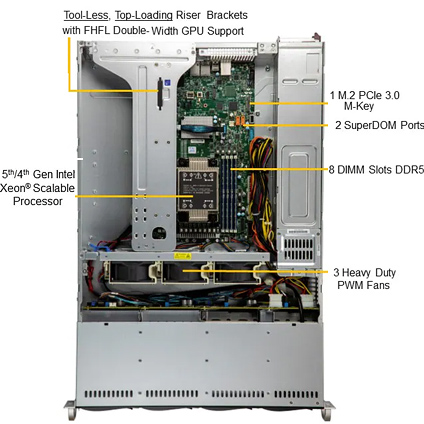 - Single Socket E (LGA-4677) 4th/5th Gen Intel Xeon Scalable processors. Up to 300W TDP