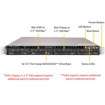 Supermicro Ultra SuperServer 6019U-TRTP2 w/ 4x 3.5" Drive Bays 2x 10G SFP+ & 2x GbE Ports