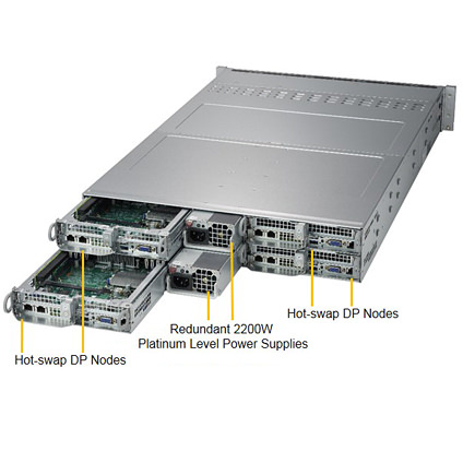 4x Hot-Pluggable Systems (Nodes) in a 2U Form Factor. Each Node Supports the Following: