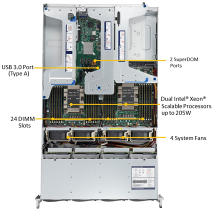 - Up to 3TB ECC 3DS LRDIMM or RDIMM, up to DDR4-2666MHz; 24x DIMM slots