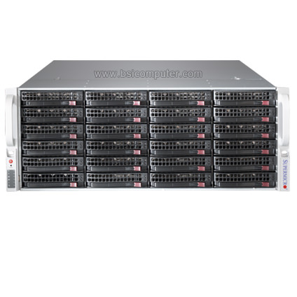 The Supermicro Server 6049P-E1CR24L 4U Rackmount server features dual Intel® Xeon® Scalable Processor, supports up to 2.0TB DDR4 LRDIMM Memory, built-in dual 10GBase-T LAN ports. The Supermicro SuperStorage Server 6049P-E1CR24L comes with twenty four 3.5" hot-swap SAS3/SATA3 drive bays, five 80mm PWM cooling fans, and is equipped with 1000W redundant titanium level power supply.