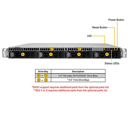- 4x Hot-swap 3.5''/2.5'' SATA/SAS Drive Bays
