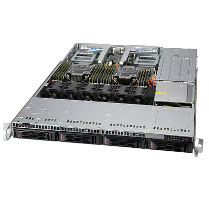 The Supermicro SuperServer 610C-TR 1U 25.6" depth Rackmount server features dual 3rd Gen. Intel® Xeon® Scalable Processor, up to 6.0TB DDR4 RDIMM/LRDIMM Memory, two NVMe M.2 slots. The Supermicro Server 610C-TR comes with 4x 3.5" or 2.5" hot-swap SATA/SAS drive bays, six 40mm counter-rotation fans, and is equipped 860W redundant platinum level power supply.