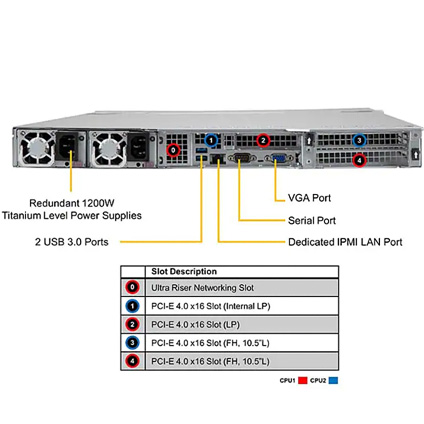 - 1x Internal PCI-E 4.0 x16, 1x PCI-E 4.0 x16 (LP), 2x PCI-E 4.0 x16 (FH, 10.5"L)