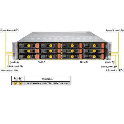 - 6x 3.5" Hot-swap NVMe/SATA Drive Bays (6x 2.5" NVMe Hybrid; 6x 3.5" NVMe Hybrid)