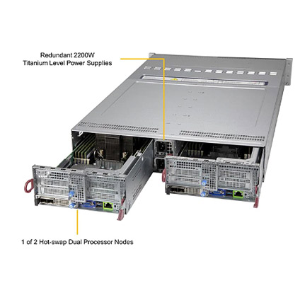 - 2200W Redundant Power Supplies Titanium Level (96%+); Shared Power Design